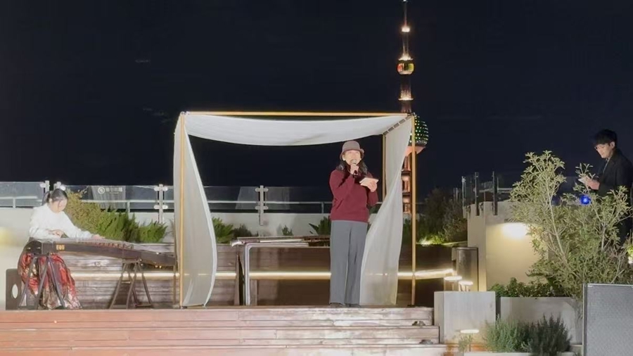 12月22日晚,上海书城31楼露台成为开放的诗歌客厅,一场别开生面的“新颜·新年·新时代”新年围炉专场拉开“2025外滩露台诗歌季”大幕。诗人程林的这首《书城新岁书》由上海作协“玫瑰心声”女诗人朗诵队成员刘侠朗诵,成为这场活动最生动的写照。露台上,茶香飘散,乐声阵阵,诗友、乐迷与市民读者在星空下、炉火旁,共同以诗与乐的方式,告别旧岁,展望充满希望的2026年。