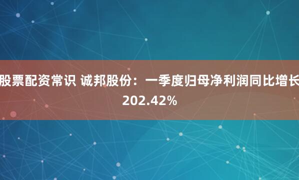 (原标题:诚邦股份:一季度归母净利润同比增长202.42%)股票配资常识 雷达财经 文|冯秀语 编|李亦辉 4月29日,